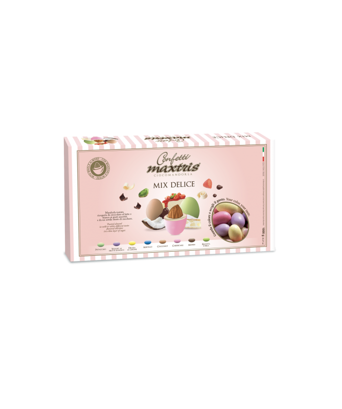 Cioccolato bianco (52,5%) (zucchero, latte intero in polvere, burro di cacao. Emulsionante: lecitina di soia. Aroma naturale di vaniglia), zucchero, mandorle tostate (18%), cioccolato al latte (7,5%) (zucchero, latte intero in polvere, burro di cacao, pasta di cacao. Emulsionante: lecitina di soia. Aroma naturale di vaniglia), maltodestrina. Coloranti: E171, E100, E101, E120, E133, E150d, E160a. Aromi. Agenti di rivestimento: cera carnauba (E903), cera d'api (E901). Aromi e coloranti in percentuali diverse nei vari gusti.