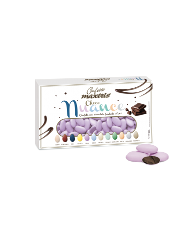 Zucchero, cioccolato fondente (45%) (zucchero, burro di cacao, pasta di cacao. Emulsionante: lecitina di soia. Aroma naturale di vaniglia), amido, maltodestrina. Colorante: E171. Agenti di rivestimento: cera carnauba (E903), cera d'api (E901). Coloranti esterni: se nudo (E120, E102*), se bordeaux (E129, E122*, E132), se blu (E132), se giallo (E100, E102*), se lilla (E120, E133), se cielo (E133, E132, E151), se avorio (E150d), se tiffany (E133, E102*, E100), se smeraldo (E133, E100), se pesca (E120, E102*, E100), se ghiaccio (E151), se tortora (E151, E132), se nero (E151, E153), se magenta (E120). (*) può influire negativamente sull’attenzione e l’attività dei bambini. Può contenere latte e prodotti a base di latte (incluso lattosio), mandorle, nocciole, noci, noci di pecan, noci di acagiù (o anacardi), pistacchi e arachidi.