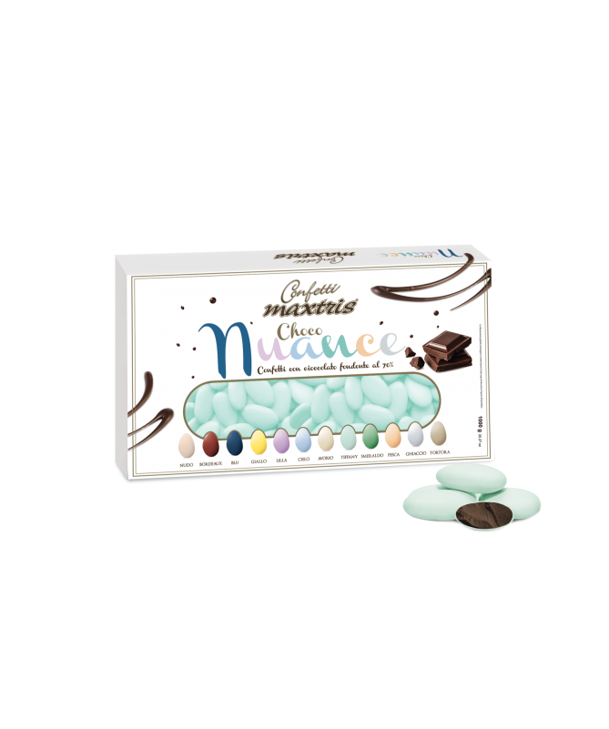 Zucchero, cioccolato fondente (45%) (zucchero, burro di cacao, pasta di cacao. Emulsionante: lecitina di soia. Aroma naturale di vaniglia), amido, maltodestrina. Colorante: E171. Agenti di rivestimento: cera carnauba (E903), cera d'api (E901). Coloranti esterni: se nudo (E120, E102*), se bordeaux (E129, E122*, E132), se blu (E132), se giallo (E100, E102*), se lilla (E120, E133), se cielo (E133, E132, E151), se avorio (E150d), se tiffany (E133, E102*, E100), se smeraldo (E133, E100), se pesca (E120, E102*, E100), se ghiaccio (E151), se tortora (E151, E132), se nero (E151, E153), se magenta (E120). (*) può influire negativamente sull’attenzione e l’attività dei bambini. Può contenere latte e prodotti a base di latte (incluso lattosio), mandorle, nocciole, noci, noci di pecan, noci di acagiù (o anacardi), pistacchi e arachidi.
