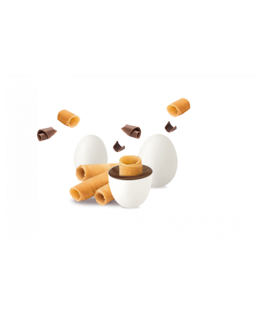 Cioccolato al latte (56%) (zucchero, latte intero in polvere, burro di cacao, pasta di cacao. Emulsionante: lecitina di soiaAroma naturale di vaniglia), cialde wafer (23%) (farina di frumento, zucchero, olio di cocco, latte intero in polvere, siero di latte dolce in polvere. Emulsionante: lecitina di soia. Tuorlo d'uovo in polvere, sale), zucchero, maltodestrina. Colorante: E171. Agenti di rivestimento: cera carnauba (E903), cera d'api (E901). Può contenere mandorle,nocciole, noci, noci di pecan, noci di acagiù (o anacardi), pistacchi e arachidi.