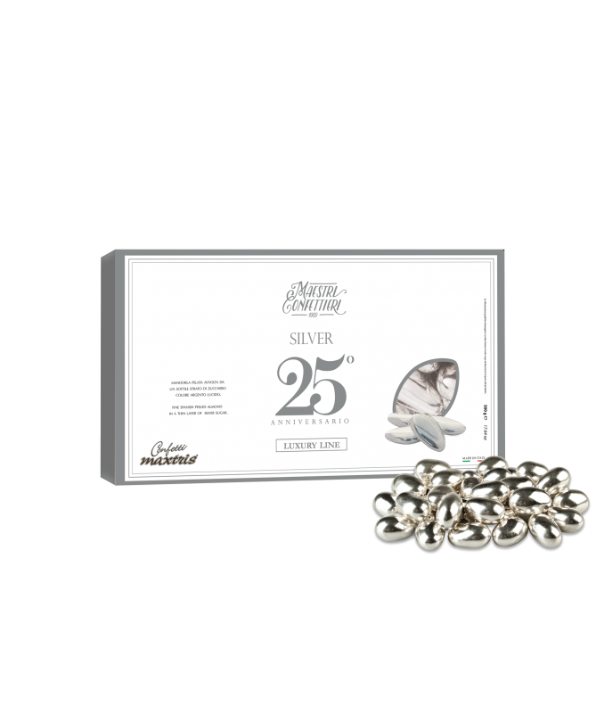 Zucchero, cioccolato fondente (45%) (zucchero, burro di cacao, pasta di cacao. Emulsionante: lecitina di soia. Aroma naturale di vaniglia), amido, maltodestrina. Agenti di rivestimento: cera carnauba (E903), cera d'api (E901). Coloranti: se oro (E174, E104*, E122*), se argento (E174). (*) può influire negativamente sull’attività e l’attenzione dei bambini. Può contenere latte e prodotti a base di latte (incluso lattosio), mandorle, nocciole, noci, noci di pecan, noci di acagiù (o anacardi), pistacchi e arachidi.