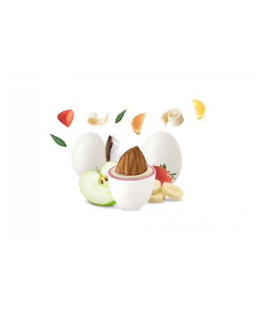 Cioccolato bianco (60%) (zucchero, latte intero in polvere, burro di cacao. Emulsionante: lecitina di soia. Aroma naturale di vaniglia), zucchero, mandorle tostate (18%), maltodestrina. Coloranti E171, E120, E133, E160c. Aromi. Agenti di rivestimento: cera carnauba (E903), cera d'api (E901). Aromi e coloranti in percentuali diverse nei vari gusti. Può contenere nocciole, noci, noci di pecan, noci di acagiù (o anacardi), pistacchi e arachidi.