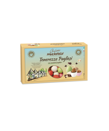 Cioccolato bianco (40%) (zucchero, latte intero in polvere, burro di cacao. Emulsionante: lecitina di soia. Aroma naturale di vaniglia), zucchero, cioccolato fondente (19%) (zucchero, pasta di cacao, burro di cacao. Emulsionante: lecitina di soia. Aroma naturale di vaniglia), mandorle tostate (18%), maltodestrina. Coloranti: E171, E120, E100, E101. Agenti di rivestimento: cera carnauba (E903), cera d'api (E901). Può contenere nocciole, noci, noci di pecan, noci di acagiù (o anacardi), pistacchi e arachidi.